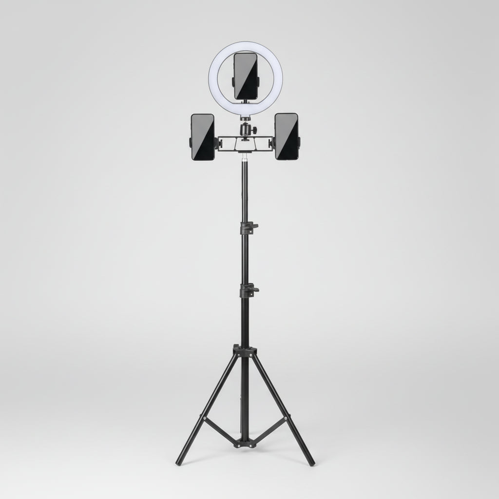 Ring Light LED 20 cm (8 pouces) sur Trepied 1.60m avec 3 Supports Smartphone – Kit Eclairage Ajustable pour Live & Streaming